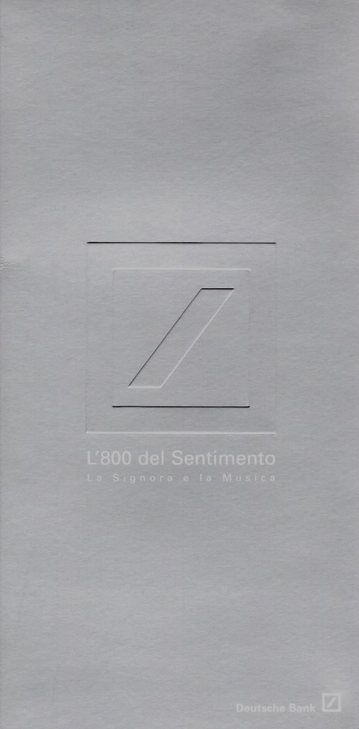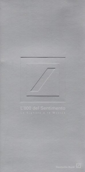 L'800 del Sentimento. La Signora e la Musica, pp. 24, formato 13,5 x 27.Copertina rigida di color argento con titoli in bianco al piatto anteriore e sulla costola.Testi Philippe Daverio e Eduardo Rescigno. Traduzioni Andrew Ellis. All'interno numerose tavole illustrate a colori. Presenti un dvd e un cd. Ottime condizioni.