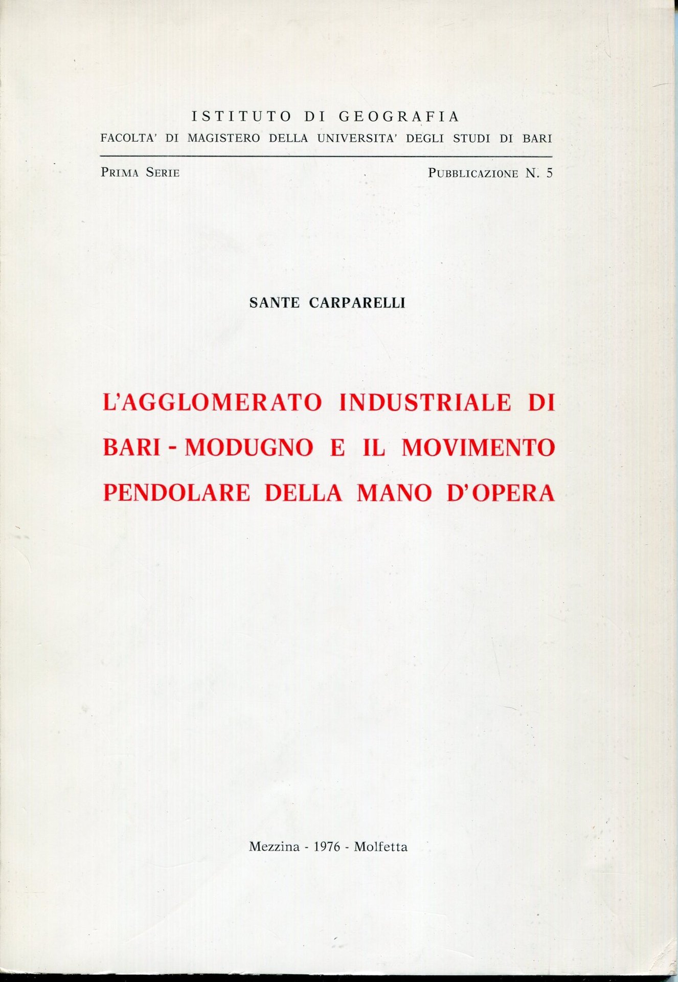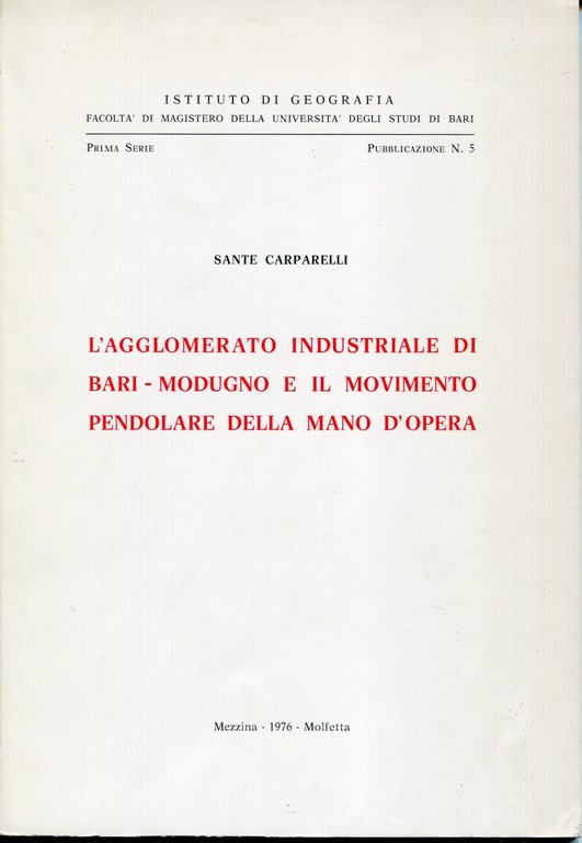 L'agglomerato industriale di Bari-Modugno e il movimento pendolare della mano d'opera | Libri antichi e moderni | Carparelli, Sante, ,Carparelli, Sante