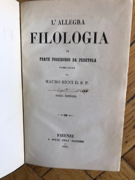 L'allegra filologia di frate Possidonio da peretola pubblicata da Mauro Ricci D.S.P. Terza edizione