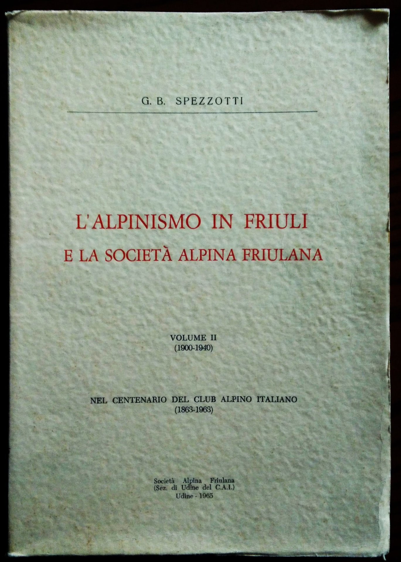 Udine, Società Alpina Friulana, 1965. 8°, pp. 377,(11), 45 illustrazioni, brossura editoriale. SOLO IL SECONDO VOLUME, strappetto al piatto posteriore, manca la sovracoperta.