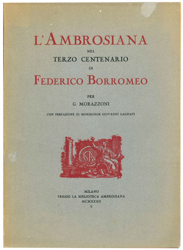 L'ambrosiana nel terzo centenario di Federico Borromeo per G. Morazzoni. Con prefazione di Monsignor Giovanni Galbiati.