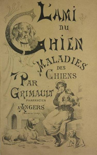 Imprimerie Boudfin, Angers, 1896. Plaquette in/12 brochée, couverture illustrée (par Tessier), 6 ff., 64 p., illustrations. Revue mensuelle dont le premier numéro parut en Janvier 1895. Jolie plaquette traitant des affections du chien : dermatoses, rage, oreilles, vers, . Thiebault 477.