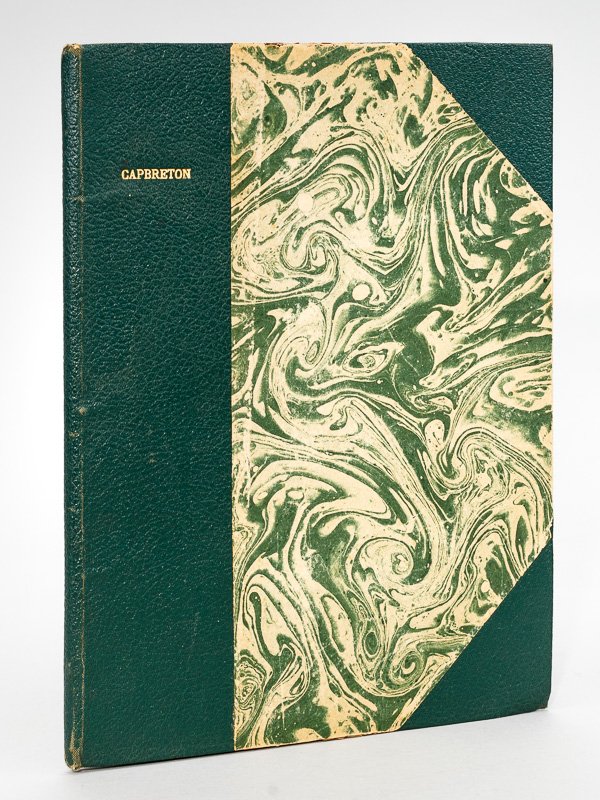 1 vol. in-8 cartonnage demi-percaline à coins verte, texte dactylographié Imprimerie Moderne, Ducasse-Duhon-Pradeu, Dax, 1911, 51 pp. et et f., et 1922, 50 pp. Le premier titre se présente comme la "troisième édition, ornée d'une vieille carte géographique", absente de cette version dactylographiée ; le second ouvrage, malheureusement incomplet des deux derniers feuillets (déchirés), propose des extraits de l'ouvrage qui sera publié un peu plus tard dans l'année 1922, et évoque notamment la "découverte de l'Amérique par les marins de Capbreton avant Christophe Colomb" (ou l'habitude qu'auraient eu les des marins "français" de pêcher vers Terre-Neuve avant 1492.). Etat moyen (manque les deux derniers feuillets du second titre, qq. griffonnages, bon état par ailleurs) pour ce document qui devait être fourni directement par l'abbé Gabarra.
