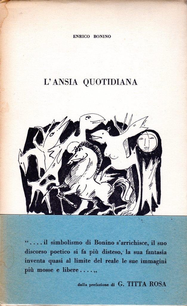 L'ansia quotidiana, prima edizione dicembre 1965, pp. 168, formato 13 x 22.<BR>Copertina morbida di colore bianco con titoli in nero e celeste sul piatto anteriore e sul dorso. Sovraccoperta con illustrata. Presente fascetta editoriale. <BR>Ottime condizioni.
