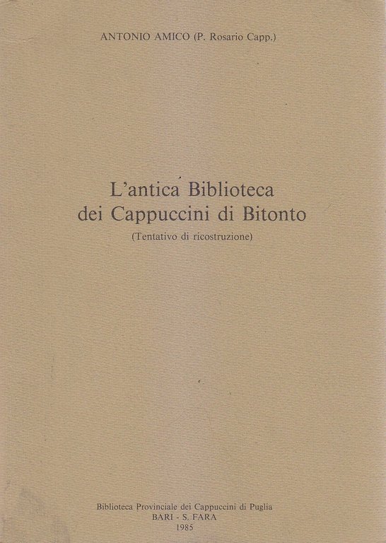 L'ANTICA BIBLIOTECA DEI CAPPUCCINI DI BITONTO di Antonio Amico 1985 libro