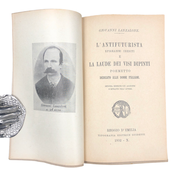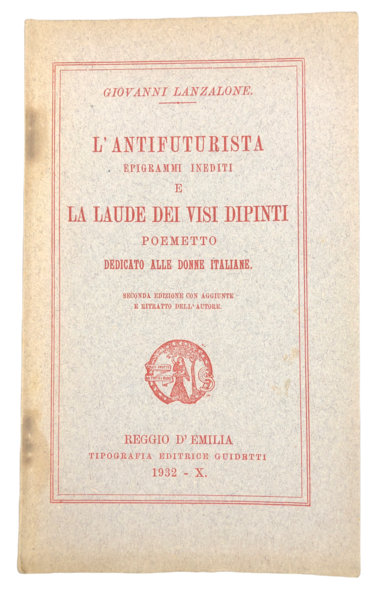 L'ANTIFUTURISTA. Epigrammi INEDITI e la LAUDE dei VISI DIPINTI. Poemetto dedicato alla DONNE italiane. Seconda edizione con aggiunte e ritratto dell'Autore. Alla sguardia, INVIO AUTOGRAFO FIRMATO dell'Autore.