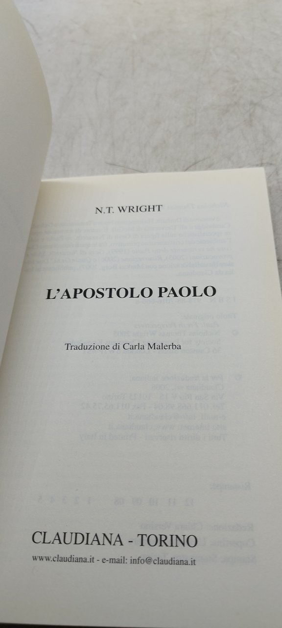 n t wright l'apostolo paolo claudiana. , claudiana 2008 italiano, 229 °°brossura