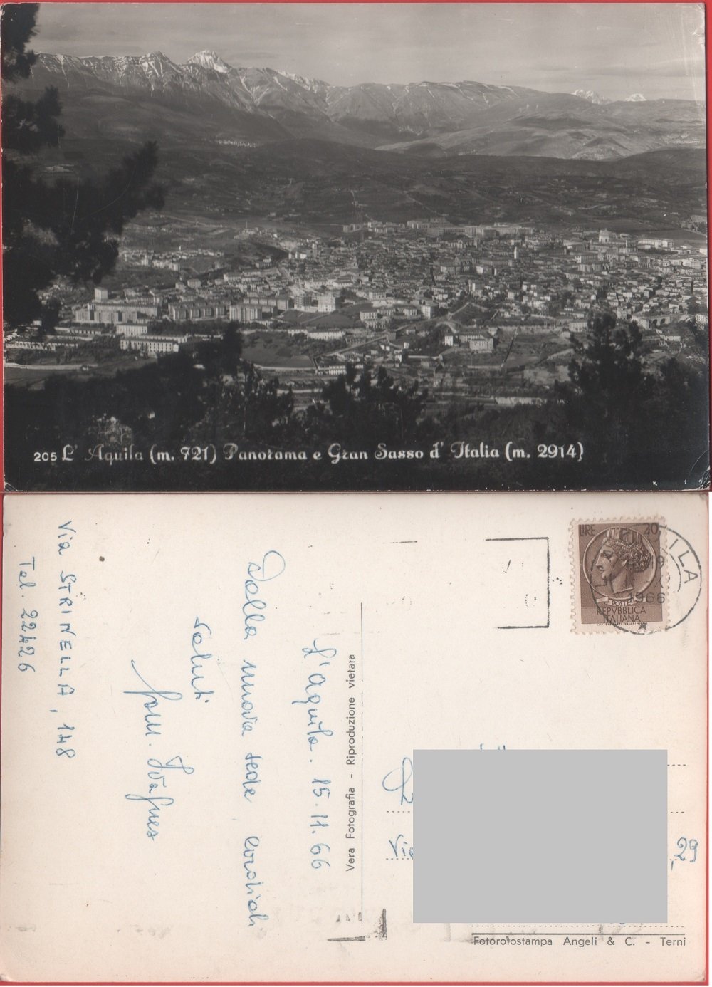 L'Aquila. Panorama e Gran Sasso d'Italia.. Viaggiata 1966