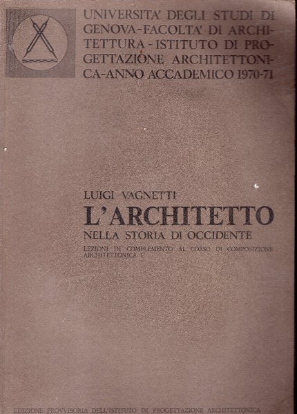 L'architetto nella storia di Occidente. Lezioni di complemento al corso di composizione architettonica 1. | Libri antichi e moderni | Vagnetti Luigi, ,Vagnetti Luigi