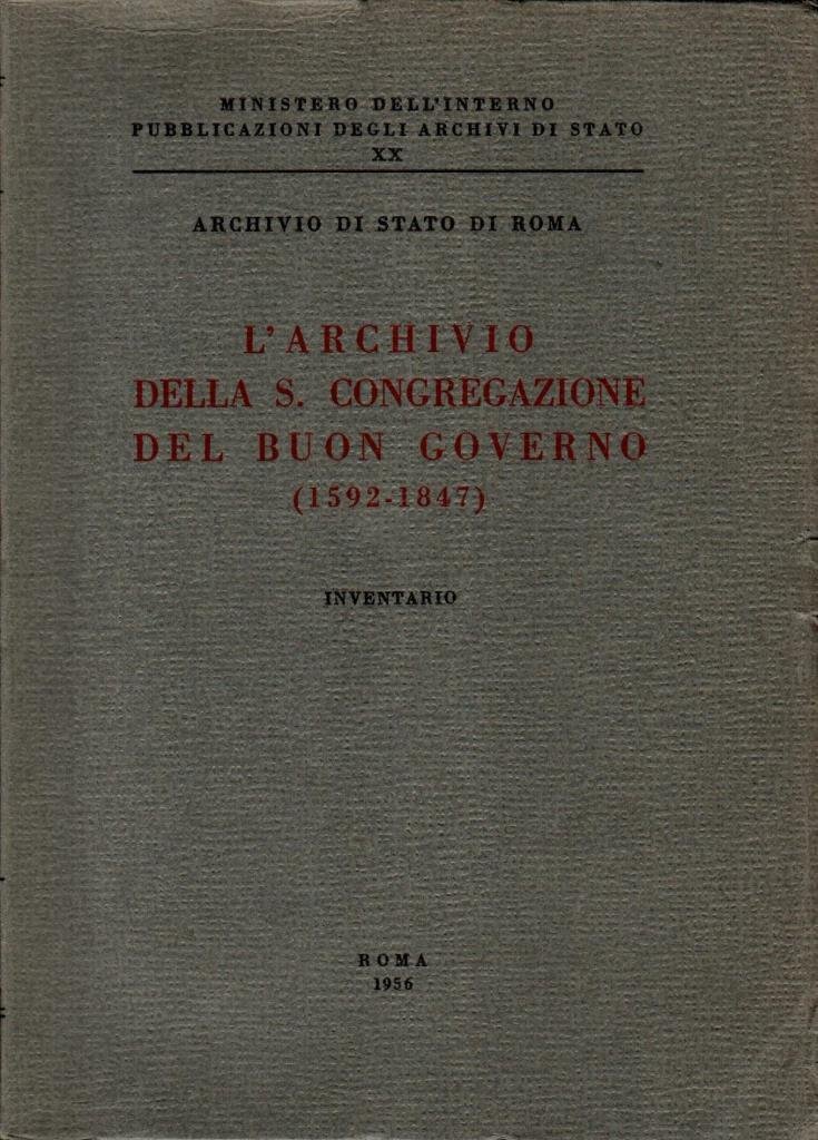 "L'archivio della S. Congregazione del Buon Governo (1592-1847)", edizione 1956, pp. 471, formato 17 x 24.