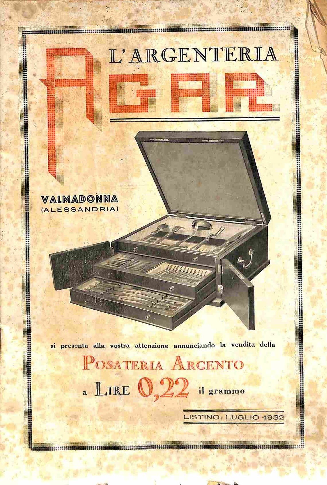 L'argenteria Agar. Valmadonna (Alessandria). Listino luglio 1932