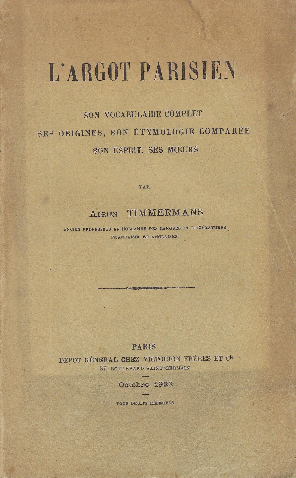 L'Argot parisien: son vocabulaire complet, ses origines, son étymologie comparée, son esprit, ses moeurs