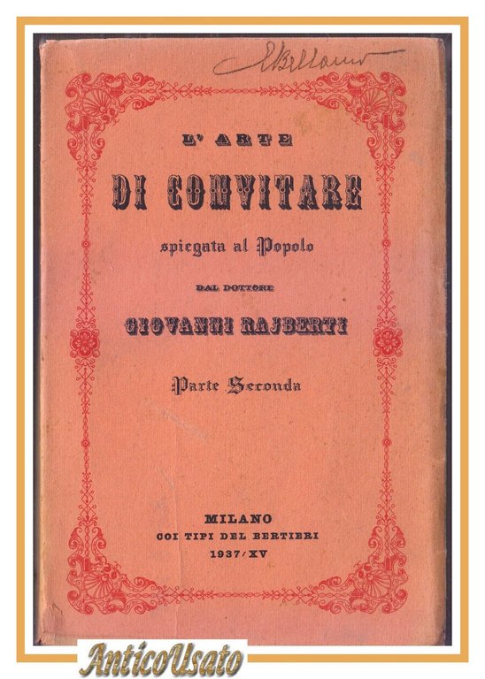 L'ARTE DI CONVITARE SPIEGATA AL POPOLO parte II di Giovanni Rajberti 1937 Libro