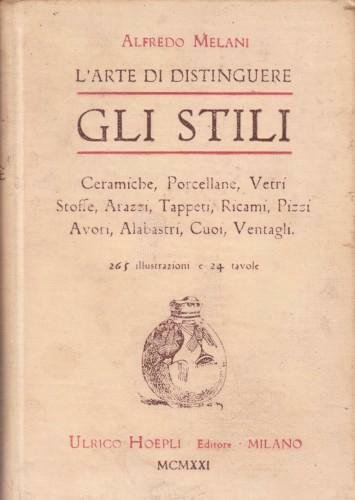 in 16°, pp. XXXI, 558; p/tela edit. ill. "Ceramiche, porcellane, vetri, stoffe, arazzi, tappeti, ricami, pizzi, avori, alabastri, cuoi, ventagli" con 265 ill. e 24 tavv. f.t. 631/23