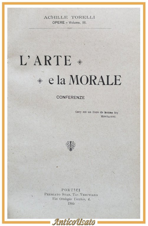 L'ARTE E LA MORALE di Achille Torelli conferenze 1905 autografo autore Libro