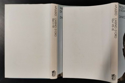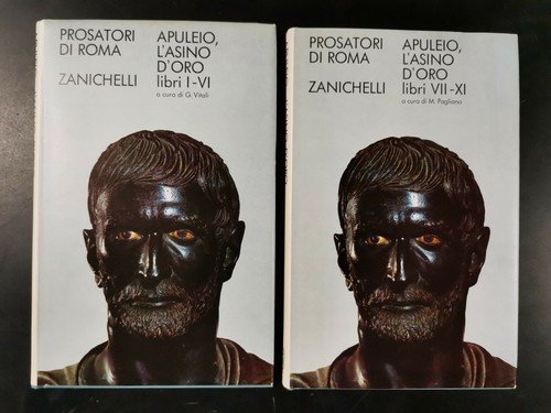 LE METAMORFOSI O L'ASINO D'ORO di Apuleio. Opera completa in due volumi. Zanichelli editore, prosatori di Roma, 1971. A cura di Guido Vitali. XVIII + 303 + 300 pagine. Copertine editoriali in tutta tela con sovraccoperta. Stato di conservazione: QUASI NUOVO