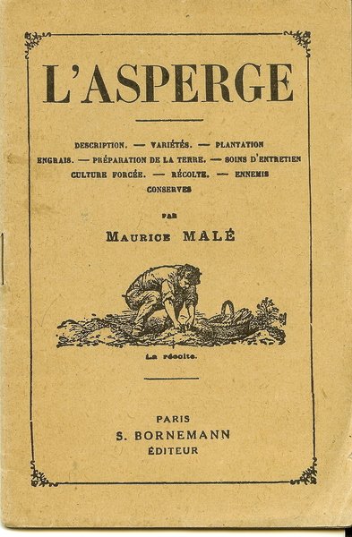Bornemann éditeur, Paris, 1946. Plaquette in/12 couverture portant une vignette, 2 illustrations en frontispice, 35 pages. Description, variétés, plantation, engrais, préparation de la terre, soins d’entretien, culture forcée, récolte, ennemis, conserves.