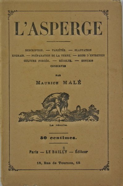 Le Bailly éditeur, Paris, s.d. (début 20è). Plaquette in/12 couverture portant une vignette, 3 illustrations en frontispice, 35 pages. Coin supérieur droit “rogné” et petit manque en base de couverture. Description, variétés, plantation, engrais, préparation de la terre, soins d’entretien, culture forcée, récolte, ennemis, conserves.