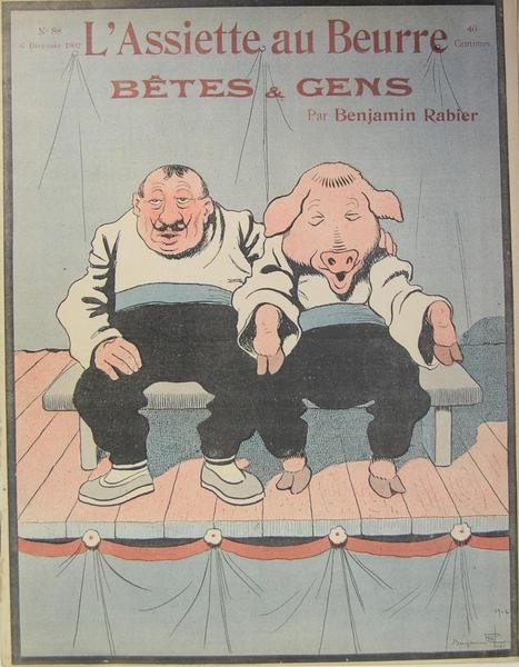 L'assiette au beurre, 1902. Revue in-4 (32 x 25 cm) illustrations en noir et en couleurs de B. Rabier, 10 feuillets. Excellent état.