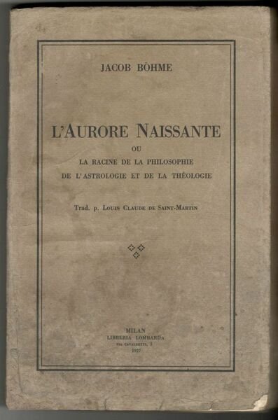 In 8°, pp. 462. Brossura editoriale. Copertina con macchie e piccoli strappi ai bordi, testo in buono stato. Ouvrage traduit de l'allemand de Jacob Böhme, sur l'édition d'Amsterdan de 1682, par le Philosophe Inconnu.
