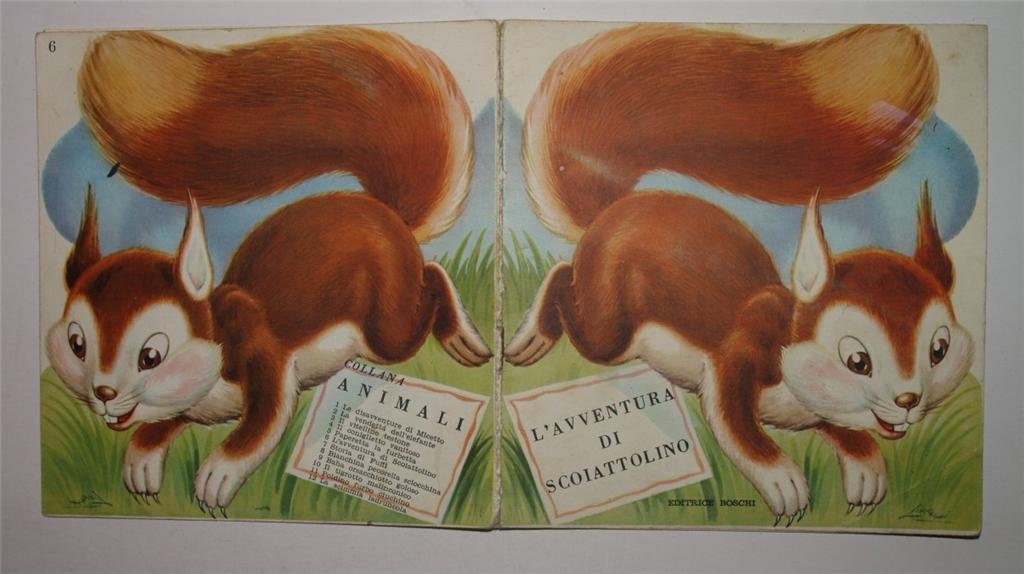 Dim. 17x16 cm. Pp. 12. 12 ills. col. S.d. ma degli anni 1950. Copertina cartonata in buone condizioni generali ma con dorso rovinato. Buona copia. 12 col. ills. No dated but of 1950's. Carton cover in good general conditions but the spine is ruined. Good copy.