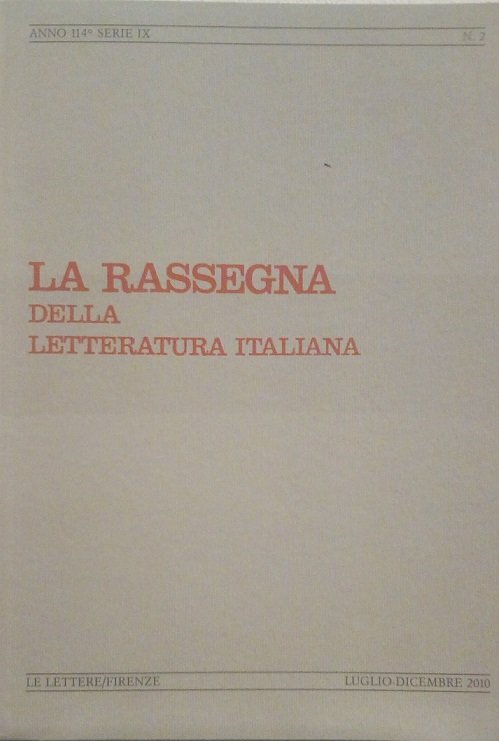 La Rassegna della Letteratura Italiana, Rivista Semestrale, Anno 114, Serie IX, Luglio-Dicembre 2010, Numero Monografico, in-8, br., pp.IX-243, ottimo