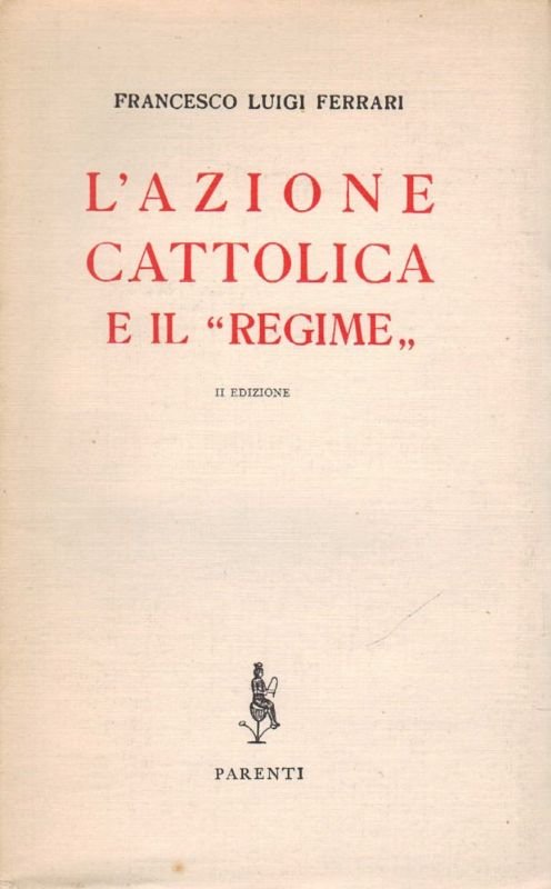 In-8°,legatura editoriale in brossura, con tit. in nero e rosso; pp. XIX(1)-199(1). Seconda edizione - la prima, postuma, dell'anno precedente. Esemplare perfetto, e intonso. Francesco Luigi FERRARI (Modena, 1889 - Parigi, 1933) è stato un giornalista, politico e antifascista italiano. Segretario generale della FUCI dal 1909 al 1910, poi capo dell'organizzazione dal 1910 al 1912, collabora con L'Avvenire d'Italia e la Gazzetta di Modena. Nel 1913 si laurea e intraprende la professione di avvocato; nel 1914 è eletto consigliere comunale a Modena, ma l'anno successivo deve partire per la Grande Guerra. Nel 1922 fonda «Il Domani d'Italia», rivista di ispirazione cattolico-democratica e antifascista, e al congresso del PPI che si tiene a Torino nel 1923 sostiene la necessità che il partito ritiri il sostegno al governo Mussolini. Aggredito una prima volta nell'aprile 1923, è poi vittima di episodi di saccheggio e devastazione ad opera di bande fasciste; nel novembre 1926 parte per la Francia. Davanti alla firma, nel 1929, dei Patti Lateranensi manifesta la sua opposizione perché considera questi una clericalizzazione delle istituzioni pubbliche e private.