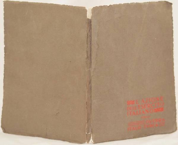 In 8. Dim. 26x18 cm. Pp. 130. Interessante pubblicazione del 1913 edita dal Comando del Corpo di Stato Maggiore Ufficio Coloniale sull'azione dell'esercito italiano nella Guerra Italo Turca nota anche come Campagna di Libia combattuta tra il 1911 e il 1912 tra Regno d'italia e Impero Ottomano per la conquista delle regioni nodafricane della Tripolitania e Cirenaica. All'interno: La mobilitazione, Le operazioni militari (prime occupazioni, Costituzione delle basi (Tripoli, Homs, Bengasi, derna, Operazioni nell'Egeo, Homs, Misurata, Derna, Tripoli, Tobruk), Servizi (artiglieria, genio, sanitario, commissariato, trasporti, veterinario, postale), Opera civile e politica ecc. Numerose foto d'epoca all'interna e due mappe finali ripiegate che mostrano la Tripolitania e la Cirenaica. In discrete condizioni. Copertina editoriale in discrete condizioni generali con usure e parti mancanti ai margini e dorso. Legatura in buone condizioni. All'interno le pagine si presentano in discrete condizioni con fioriture e gore d'umidità al margine superiore. Interesting pamhplet of 1913 edited by Comando del Corpo di Stato Maggiore Ufficio Coloniale about the action of Italian Army in Italy Turkish War also known as Campaign of Libia fought between 1911 and 1912 between Italian Reign and Octoman Empire for the conquer of north Africa regions of Tripolitania and Cirenaica. Inside: Movement, Military operations (first occupations, Constitution of bases (Tripoli, Homs, Bengasi, Derna, Operations in Egeo sea, Homs, Misurata, Derna, Tripoli, Tobruk), Services (artiglieria, genio, health, commissariato, transports, animal health, service), Civil and political work ecc. Different photoes inside and two final maps showing Tripolitania and Cirenaica. In fair conditions. Editorial cover in fair general conditions with wearings and missing parts in the edges and spine. Binding in good conditions. Inside pages are in fair conditions with foxings and humidity stains in the upper edge.