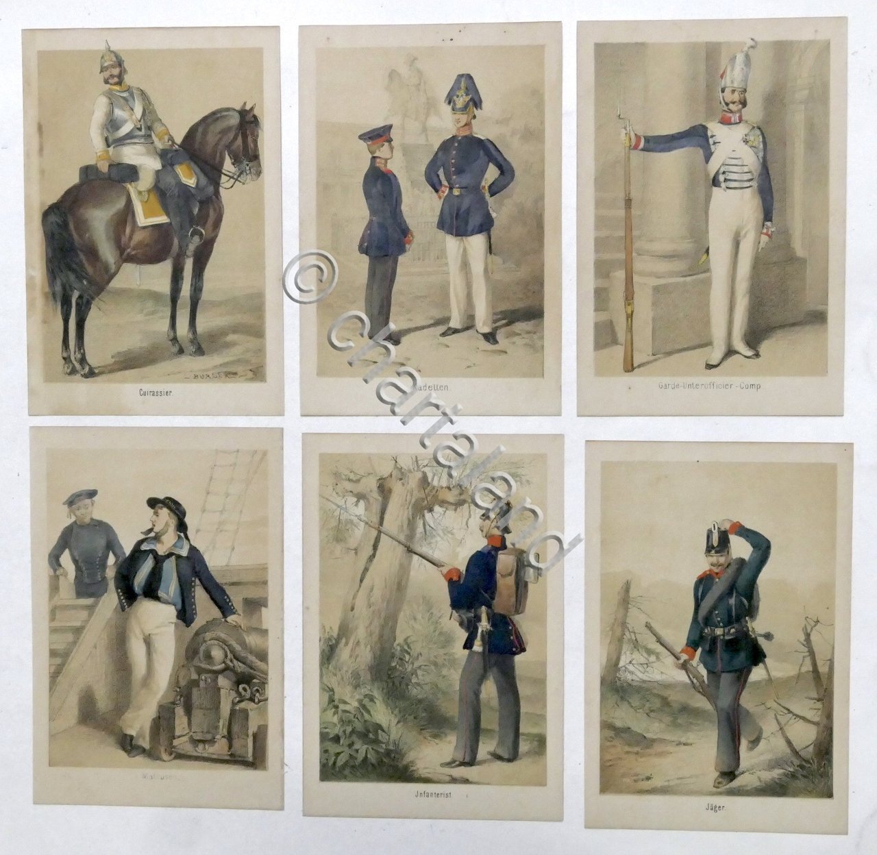 L. Burger Lotto 6 stampe Uniformi Prussia #7 - Preussische Uniformirung 1860 ca.