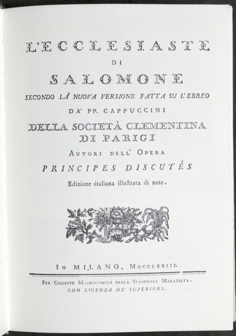 L'Ecclesiaste di Salomone (1773) - Anastatica 1988