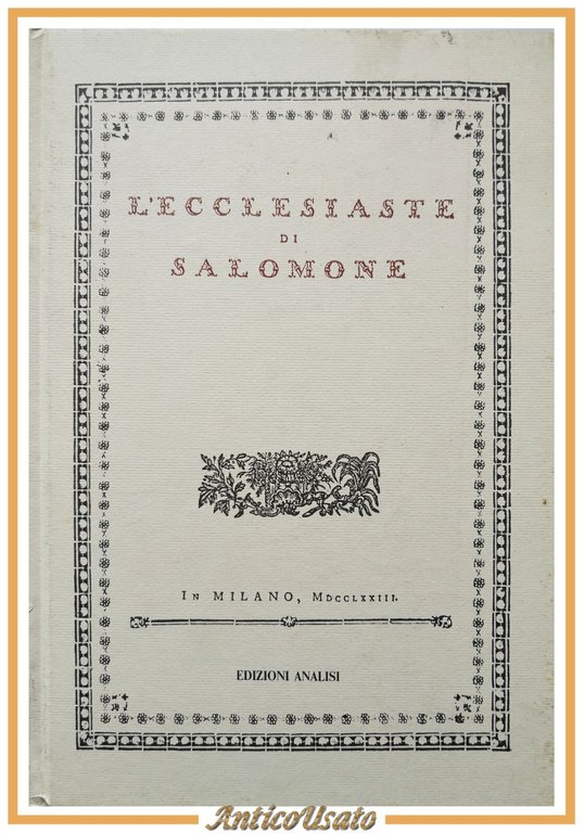 L'ECCLESIASTE DI SALOMONE 1988 Edizioni Analisi libro reprint edizione 1773