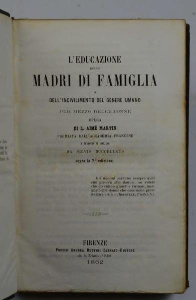 L'educazione delle madri di famiglia o dell'incivilimento del genere umano per mezzo delle donne…