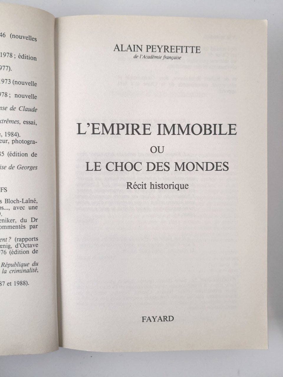 L'EMPIRE IMMOBILE OU LE CHOC DES MONDES di Alain Peyrefitte 1989 Fayard Libro