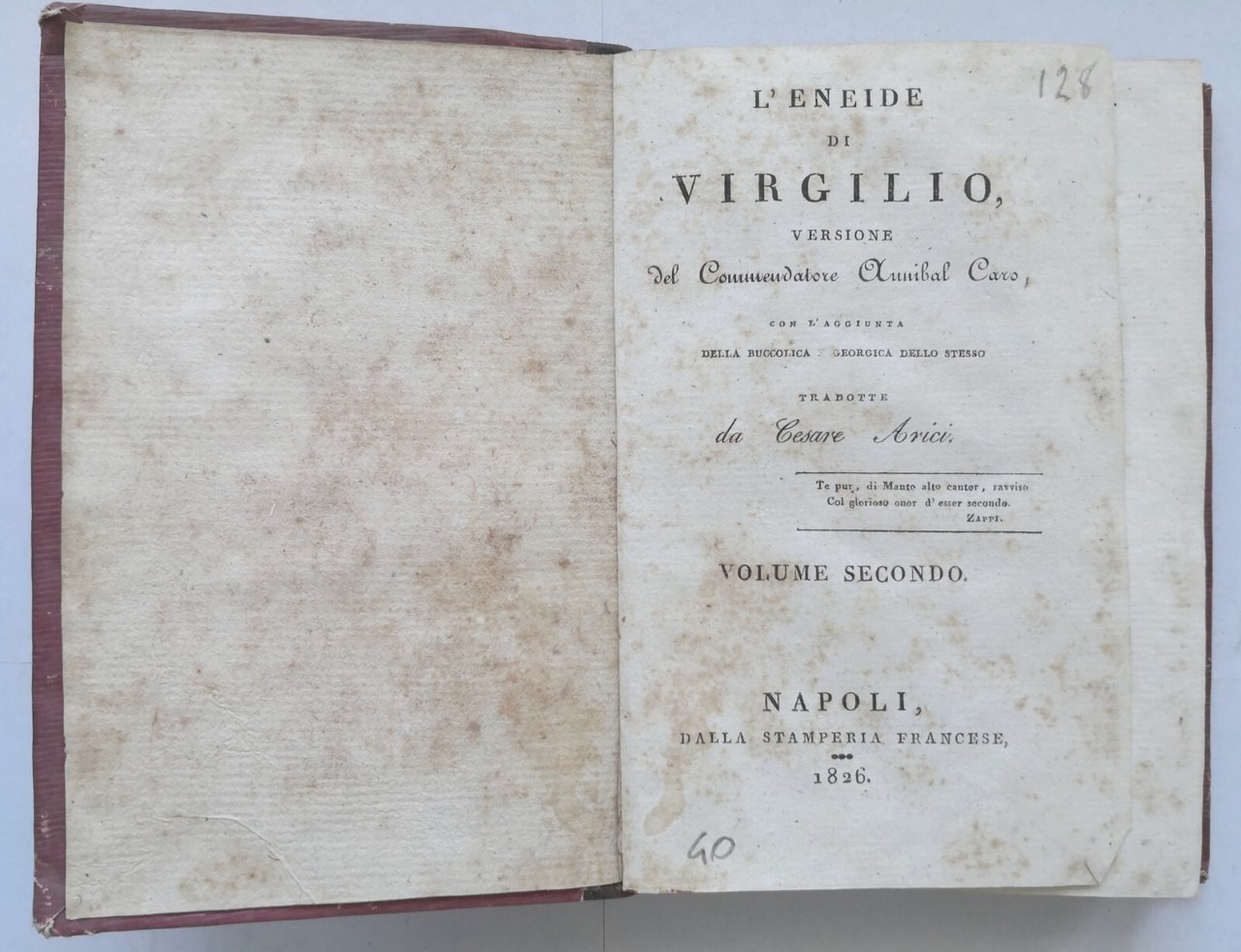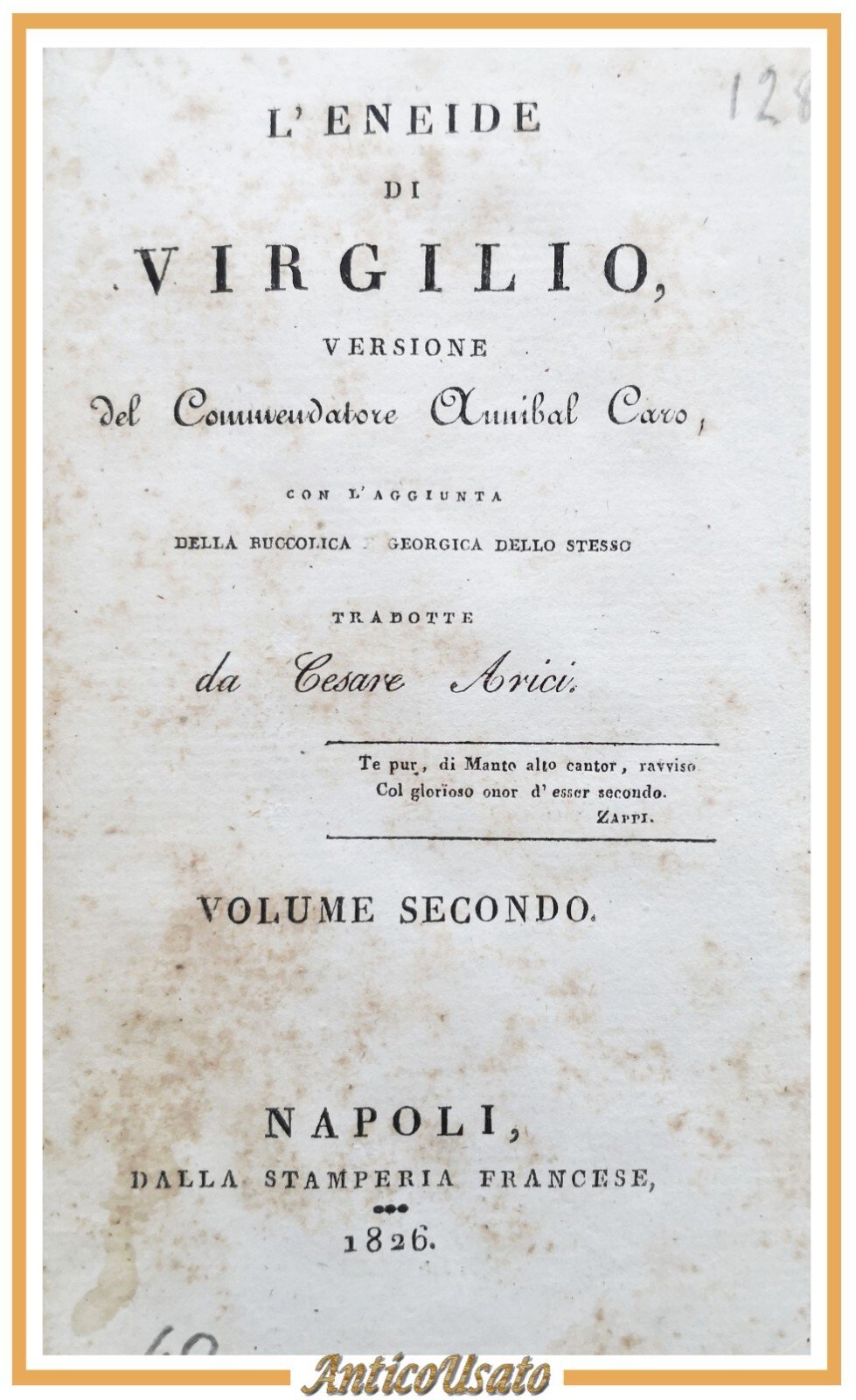 L'ENEIDE DI VIRGILIO Annibal Caro volume 2 1826 Stamperia Francese libro antico