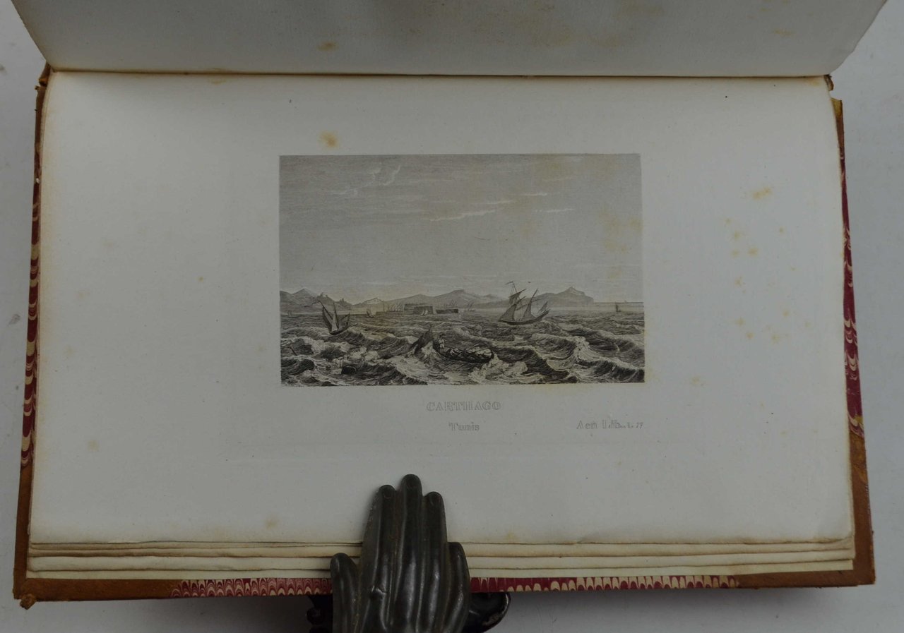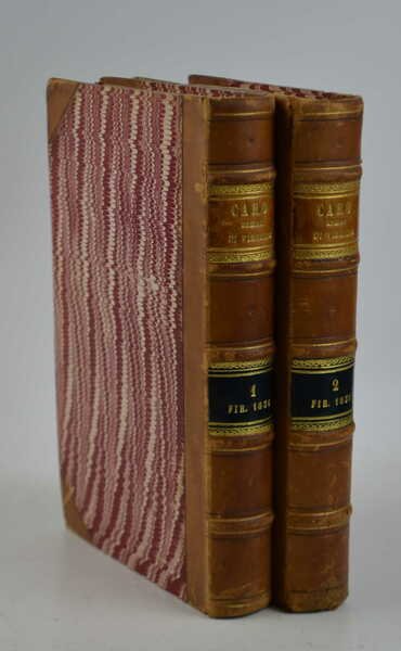 Due volumi di cm. 24,5, pp. (8) 462; 506. Primo frontespizio inciso a ciascun volume, ritratti f.t. di Virgilio e Annibal Caro e 50 belle incisioni f.t. di località prevalentemente italiane. Solida legatura di poco posteriore in mezza pelle, dorsi a nervi con filetti in oro e titoli su doppi tasselli bicolori. Ex libris nobiliari incisi. Esemplare particolarmente marginoso (in barbe), con qualche fioritura sparsa, qualche segno d'uso esterno, peraltro in ottimo stato di conservazione.