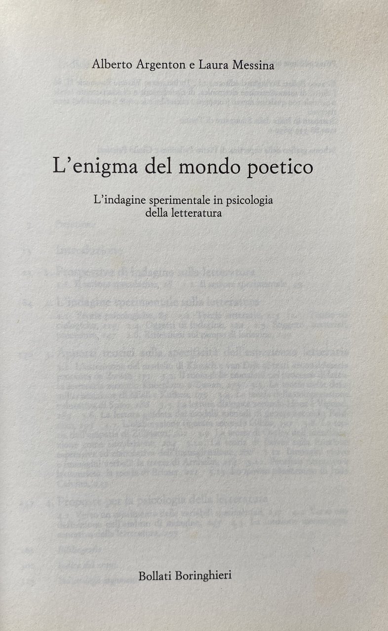 Titolo: L'enigma del mondo poetico. L'indagine sperimentale in psicologia della letteratura