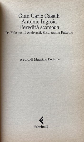 L'EREDITÀ SCOMODA. DA FALCONE AD ANDREOTTI. SETTE ANNI A PALERMO. A CURA DI MAURIZIO DE LUCA