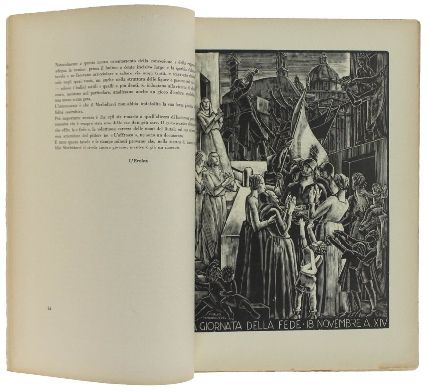(Codice EK/0715) In 4° (33,5x24,7 cm) 60 pp. Quaderno dedicato a Publio Morbiducci autore di 6 tavole: xilografie originali, altre dieci nel testo e illustrazione riproducente la copertina, in apertura del fascicolo. Copertina anteriore mancante, copertina posteriore fittizia, dorso professionalmente rifatto. Interno e tavole in perfetto stato. ~~~ SPEDIZIONE IN ITALIA SEMPRE TRACCIATA