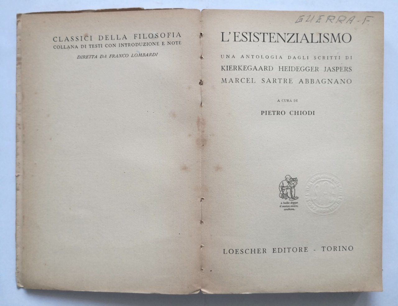 L'ESISTENZIALISMO a cura di Pietro Chiodi 1957 Loescher Libro filosofia
