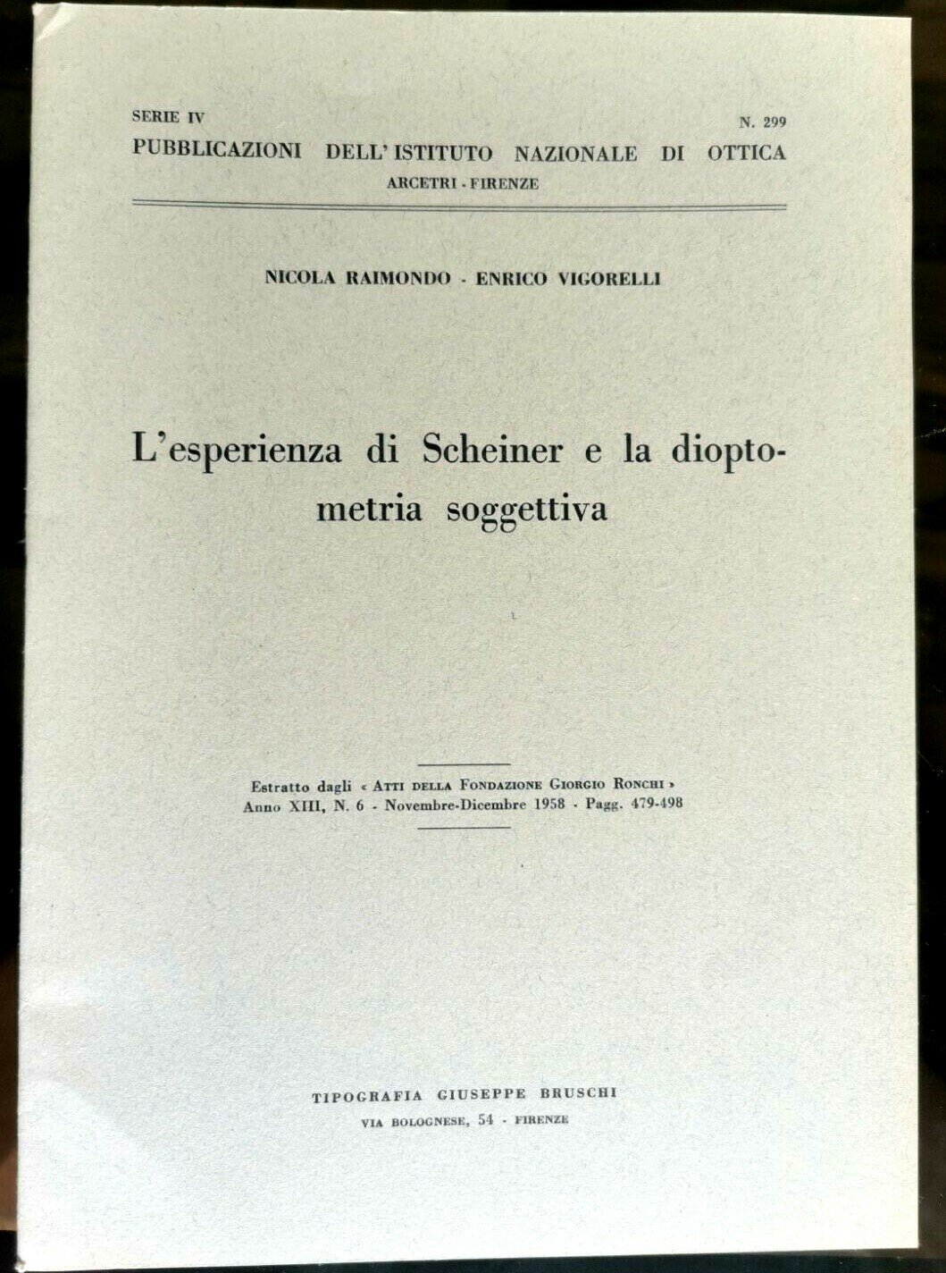 L'ESPERIENZA DI SCHEINER E LA DIOPTOMETRIA SOGGETTIVA Nicola Raimondo libro 1958