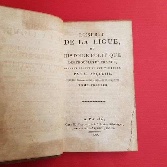 L'Esprit de la Ligue, ou histoire politique des troubles de la France, pendant les XVIe et XVIIe siècles, par M. Anquetil. Cinquième édition revue, corrigée et augmentée.