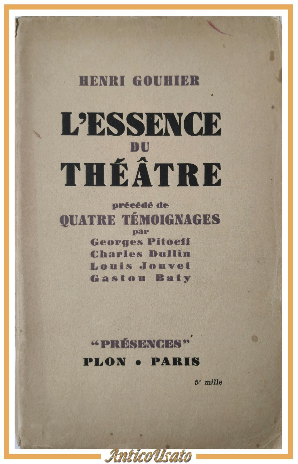 L'ESSENCE DU THEATRE di Henri Gouhier 1948 Librairie Plon Libro Teatro francese