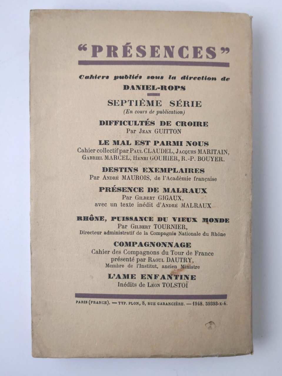 Librairie Plon, Serie "Prèsences", 1948.