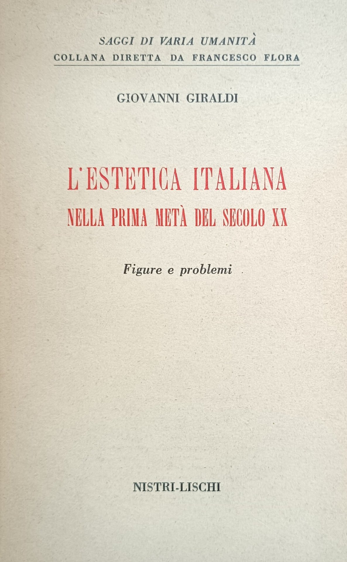 L'ESTETICA ITALIANA NELLA PRIMA METÀ DEL SECOLO XX. FIGURE E PROBLEMI