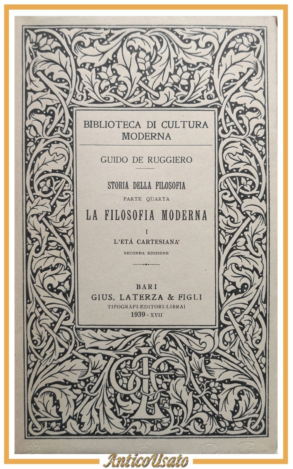 L'ETÀ CARTESIANA LA FILOSOFIA MODERNA di Guido De Ruggiero 1939 Laterza Libro