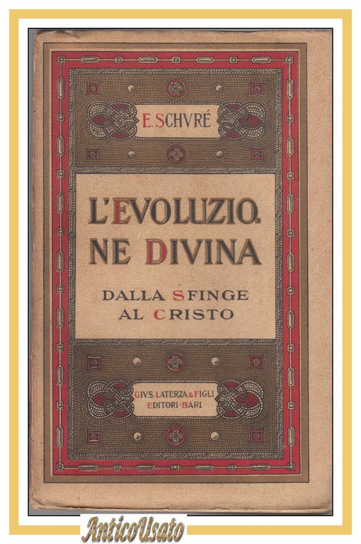 L'EVOLUZIONE DIVINA DALLA SFINGE AL CRISTO di Edoardo Schure 1922 Laterza libro