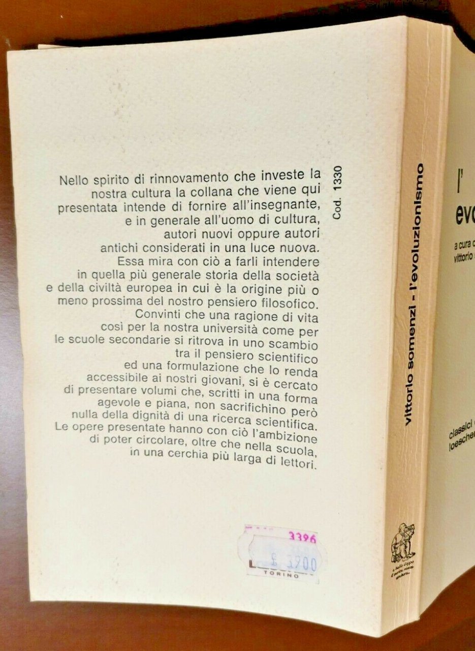 L'EVOLUZIONISMO cura di Vittorio Somenzi 1976 Loescher libro classici filosofia