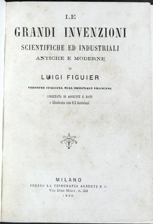 L. Figuier - Le grandi invenzioni scientifiche ed industriali - ed. 1864