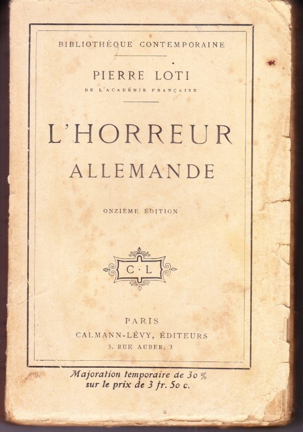 276 pages. Broché. VOLUME IN DISCRETE CONDIZIONI, MANCANZE IN COPERTINA, LEGATURA LENTA. L'Horreur allemande est un livre poignant et bouleversant écrit par Pierre Loti, un écrivain français de renom. Publié en 1916, ce livre relate les atrocités commises par les Allemands pendant la Première Guerre mondiale.Pierre Loti, qui a lui-même participé à la guerre, décrit avec une grande précision les horreurs qu'il a vues et vécues sur le front. Il raconte notamment les exactions commises par les soldats allemands sur les civils, les viols, les pillages, les exécutions sommaires, les tortures et les mutilations.L