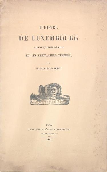 Lyon, Imprimerie Aimé Vingtrinier, Lyon, 1861. Plaquette in-8 (24 x 16 cm) couverture illustrée d'une vignette, 20 pages.